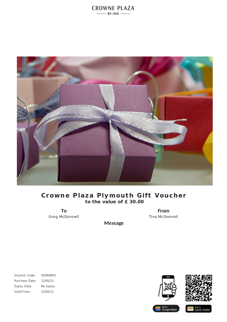 Thank You Teacher - Crowne Plaza Plymouth Gift Voucher
